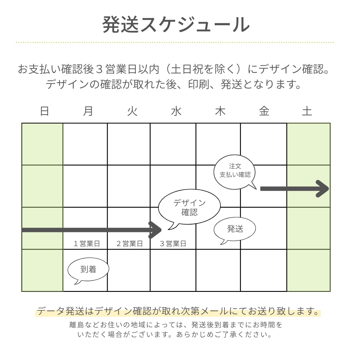 ・お送りいただいたデータに不具合があった場合は3日間以上の日数を頂く場合がございます。