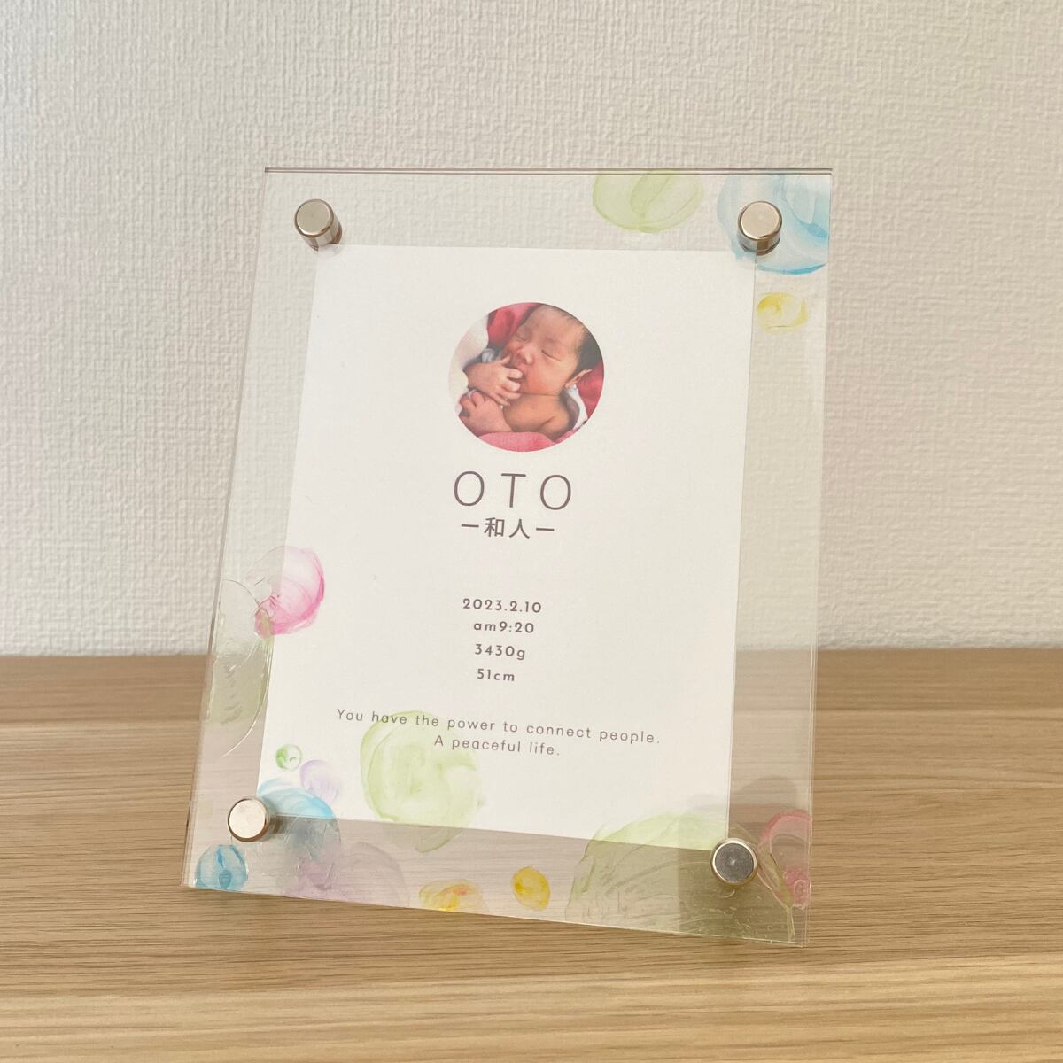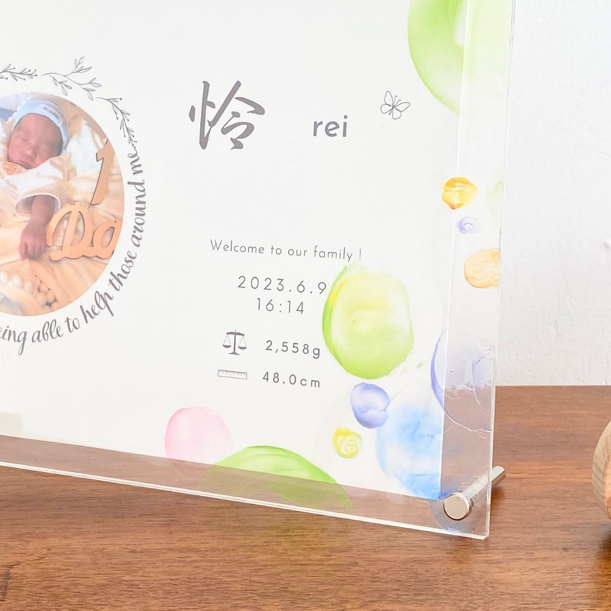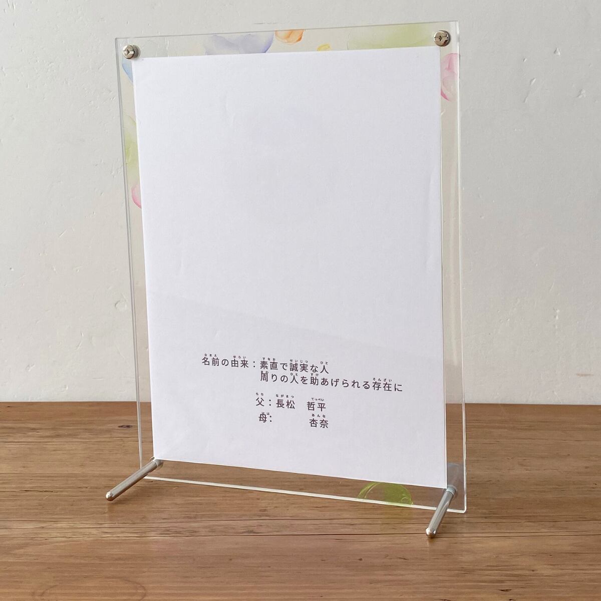 大切なお子さまのお名前を彩る、世界にひとつだけのアクリル命名書です。