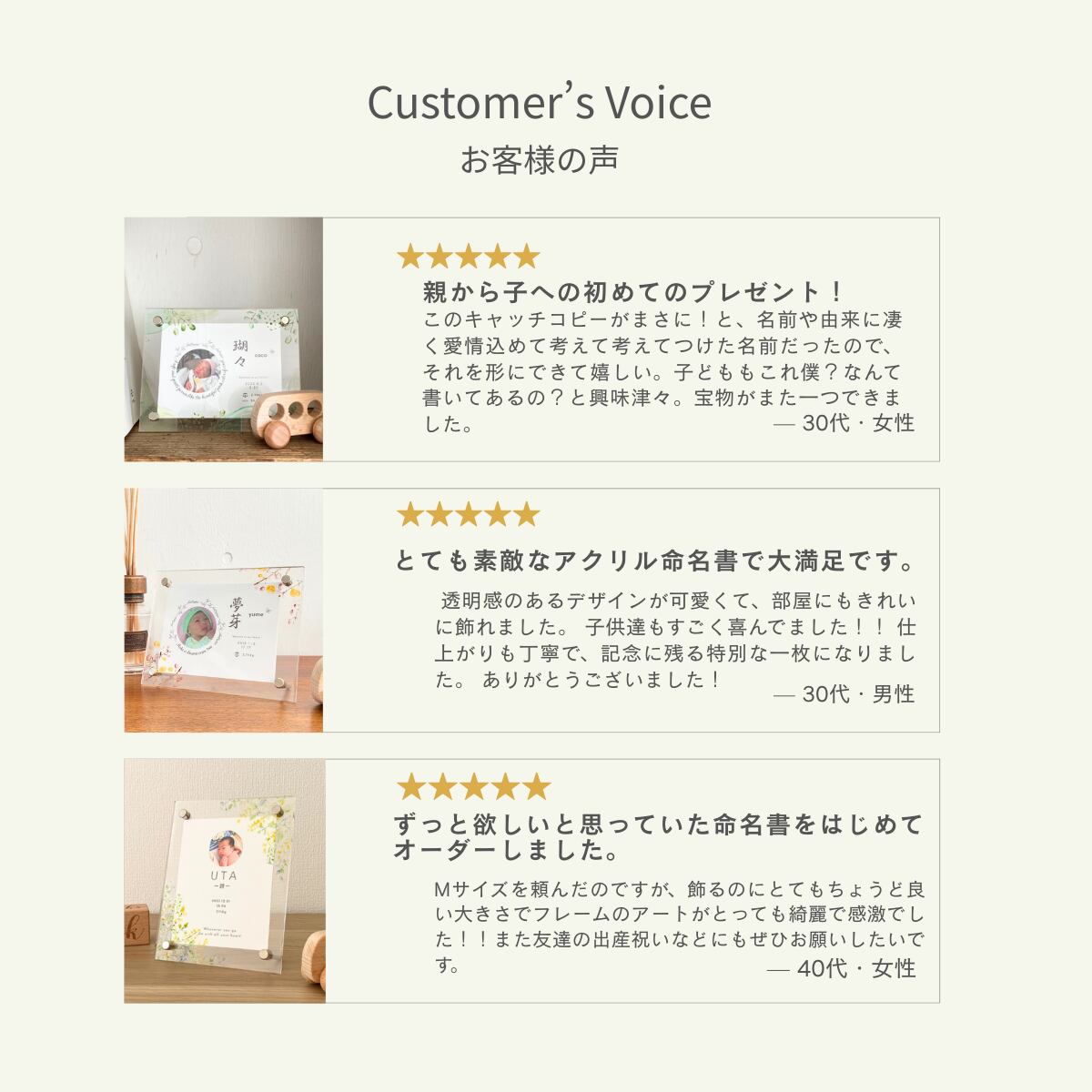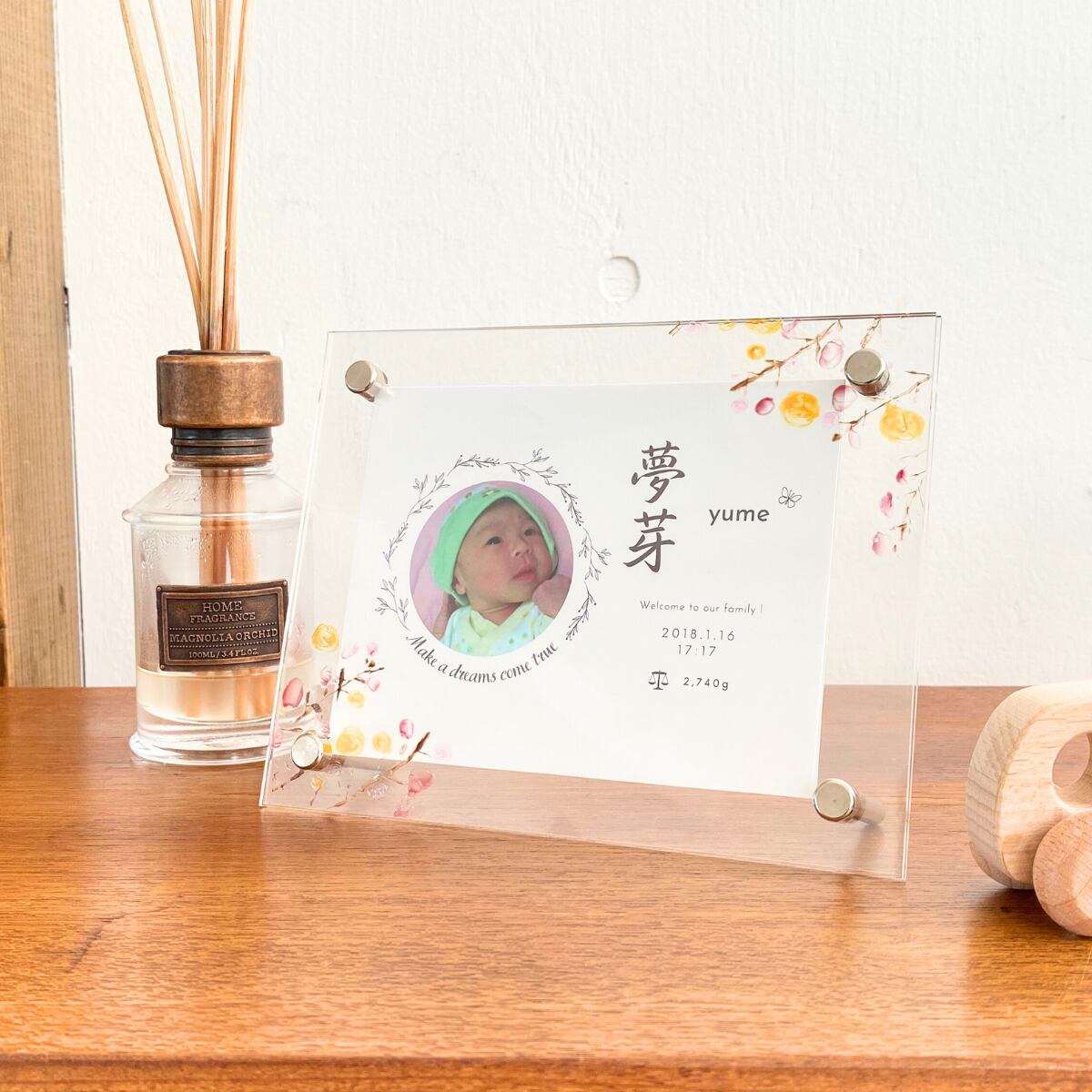 大切なお子さまのお名前を彩る、世界にひとつだけのアクリル命名書です。