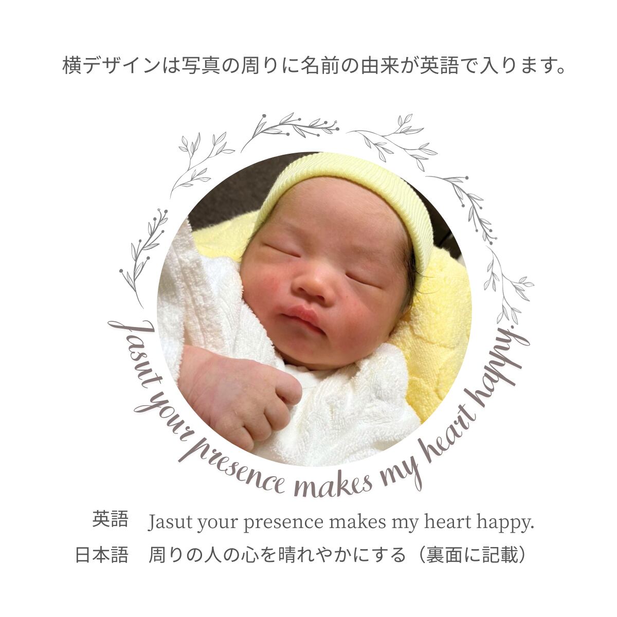 裏面には「お名前に込めた由来」や「ご両親からのメッセージ」をお入れすることができます。