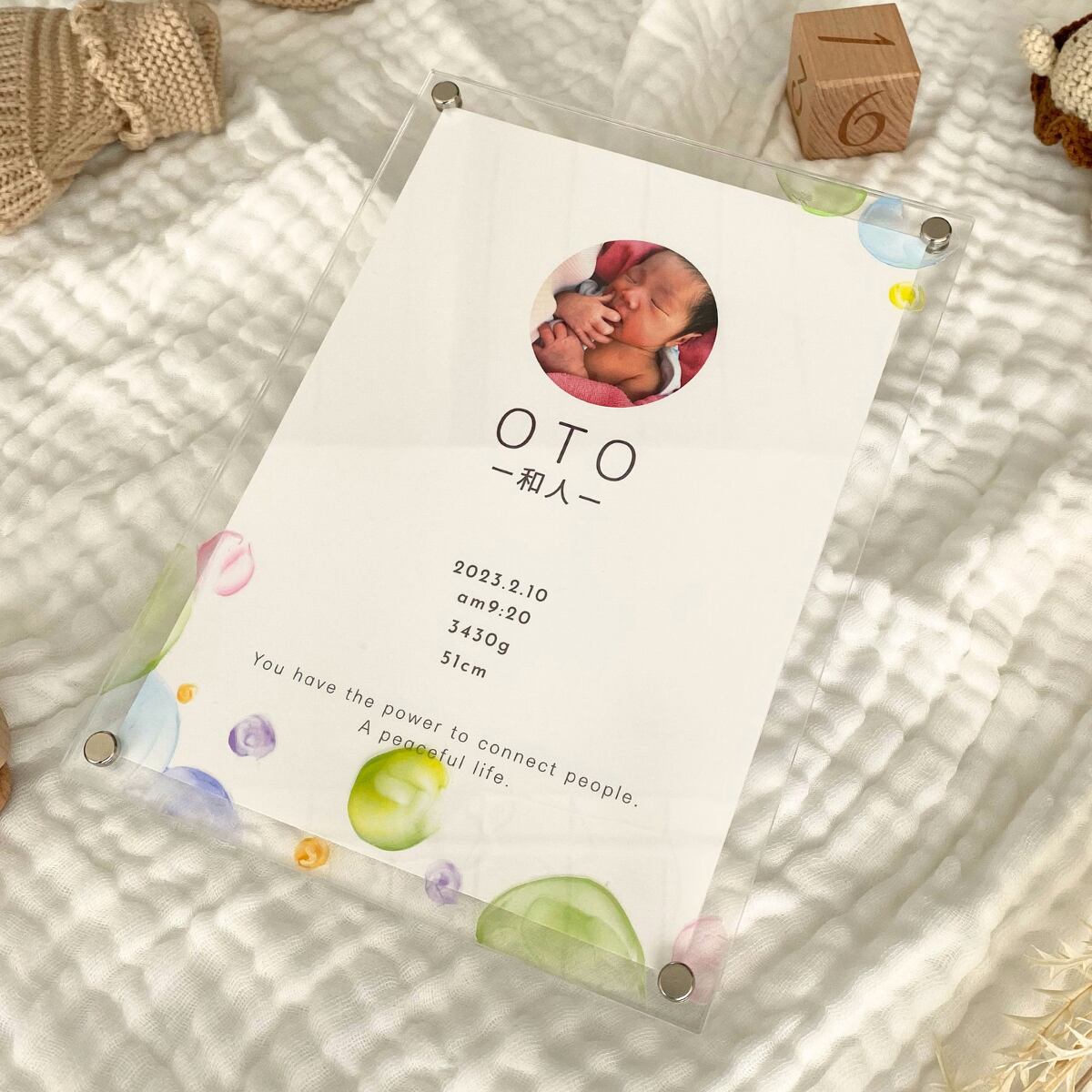 大切なお子さまのお名前を彩る、世界にひとつだけのアクリル命名書です。
