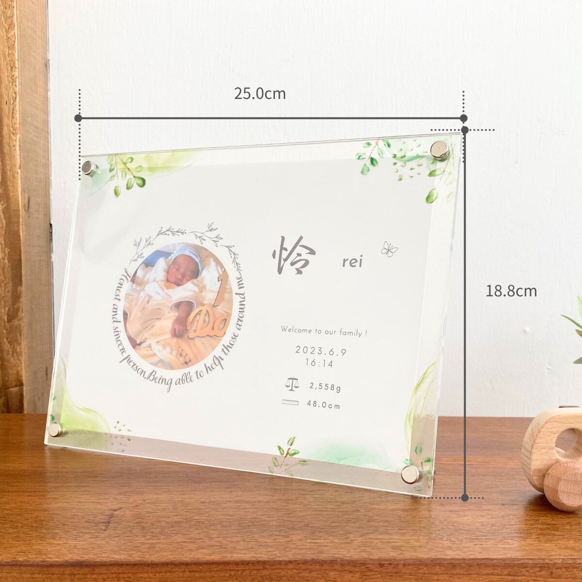 大切なお子さまのお名前を彩る、世界にひとつだけのアクリル命名書です。