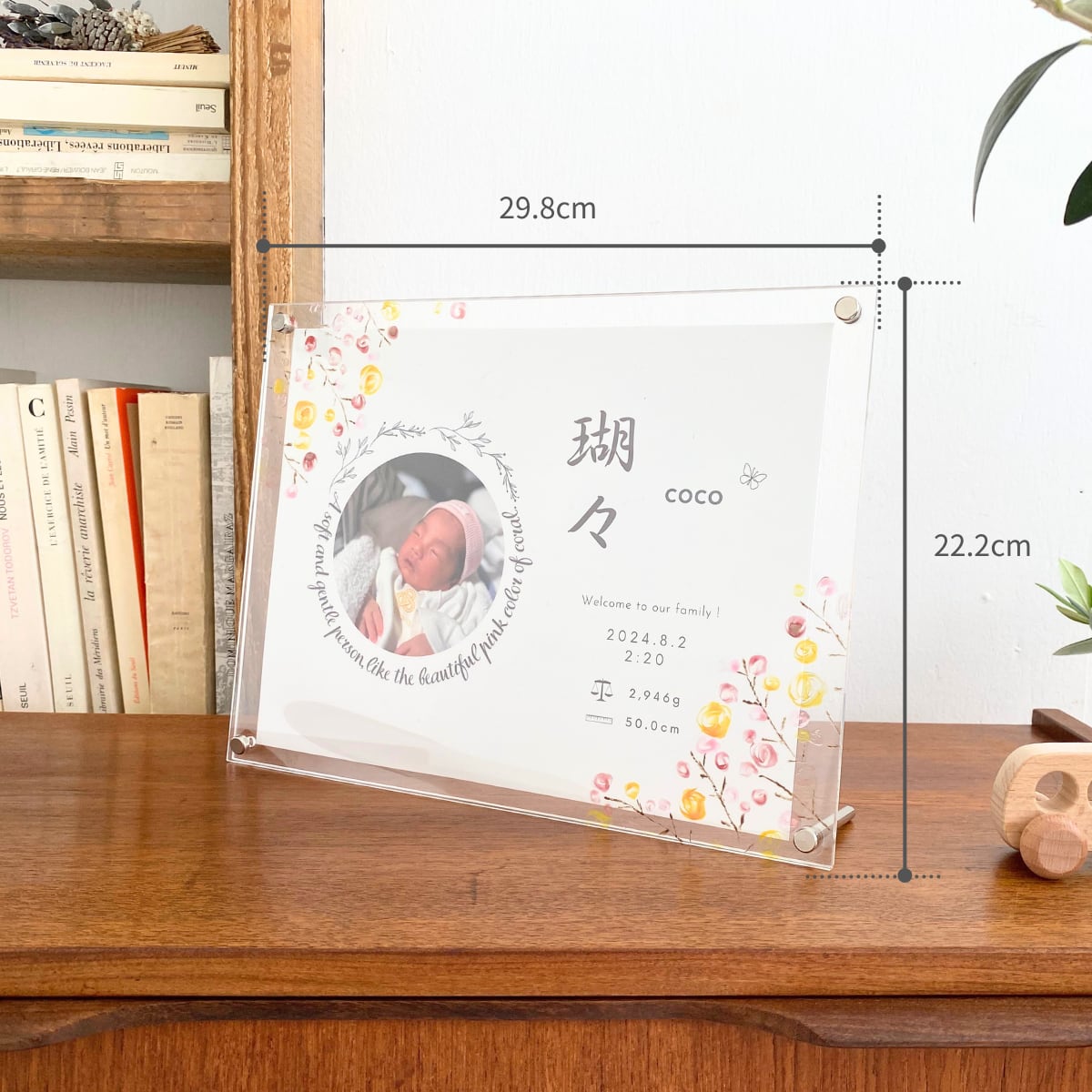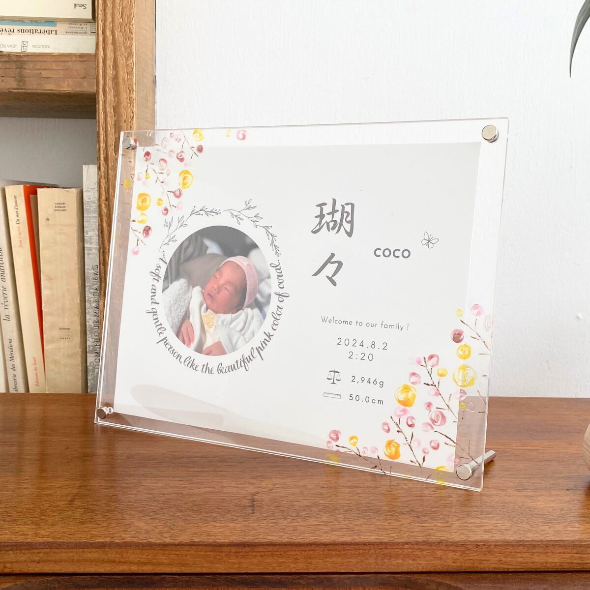 大切なお子さまのお名前を彩る、世界にひとつだけのアクリル命名書です。