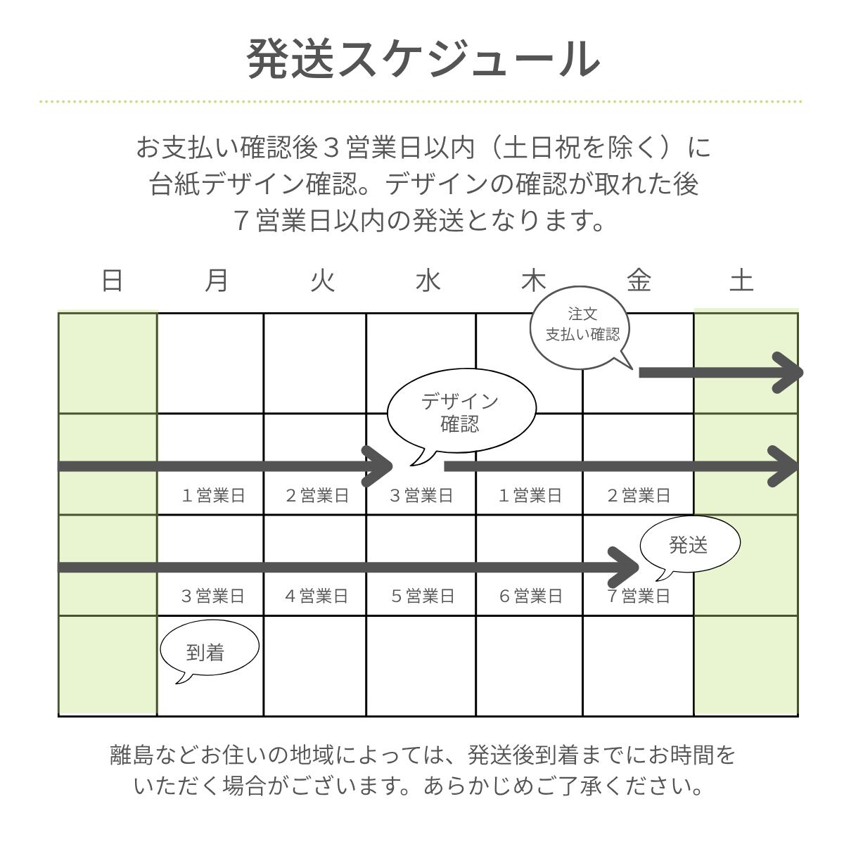 完成した商品のお届けは郵便、配送事業者の状況、お住まいの地域などにより異なりますが発送後2~3日必要です。