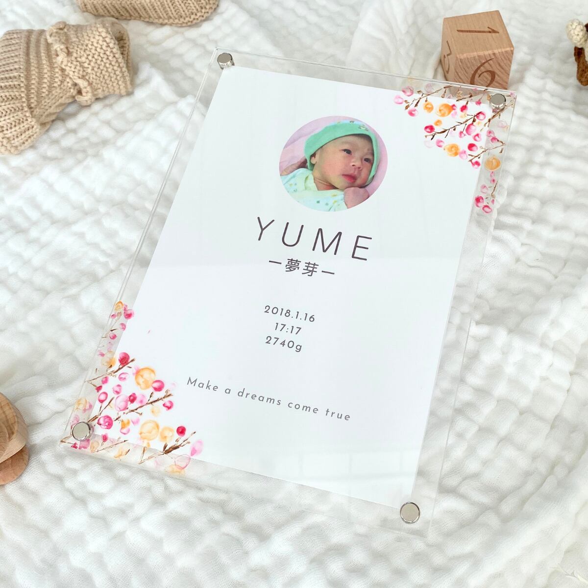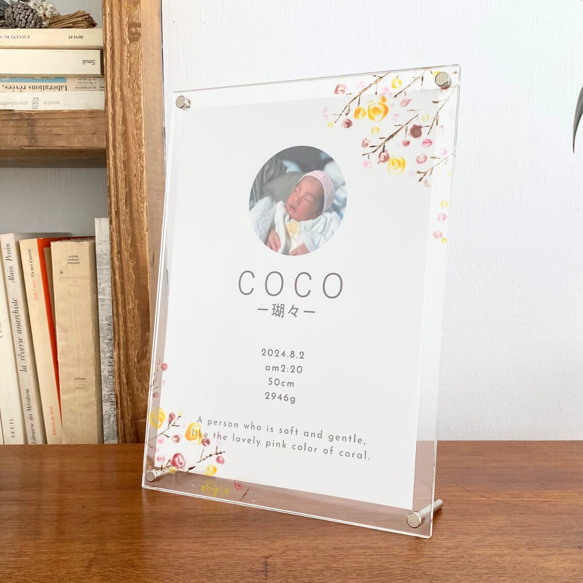 大切なお子さまのお名前を彩る、世界にひとつだけのアクリル命名書です。