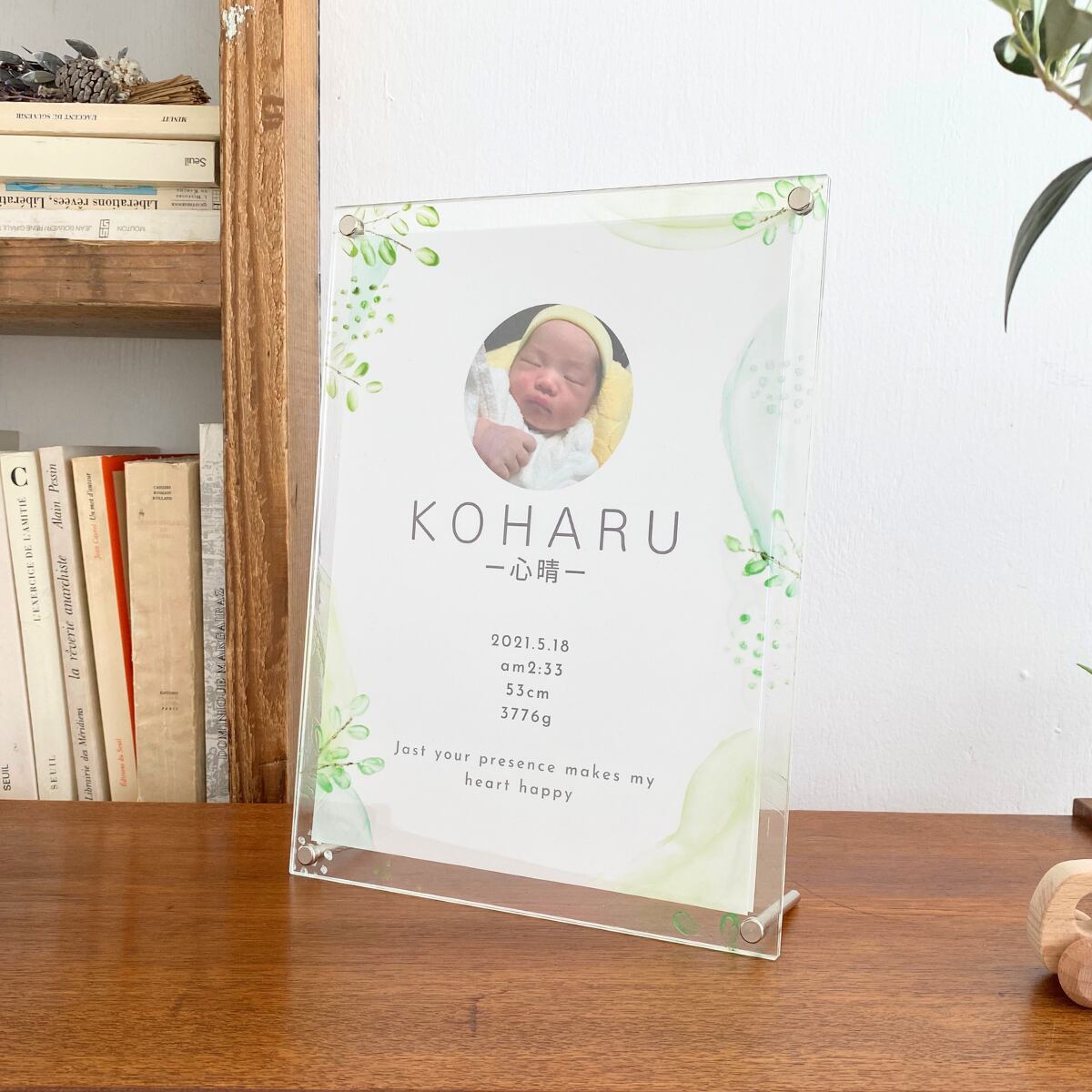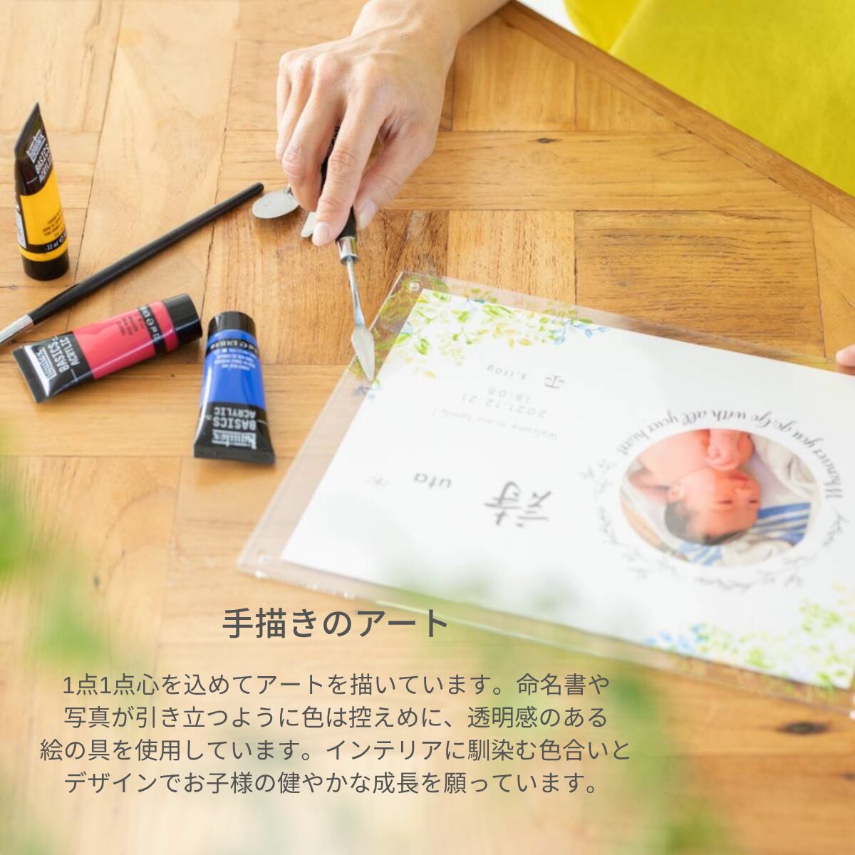 大切なお子さまのお名前を彩る、世界にひとつだけのアクリル命名書です。
